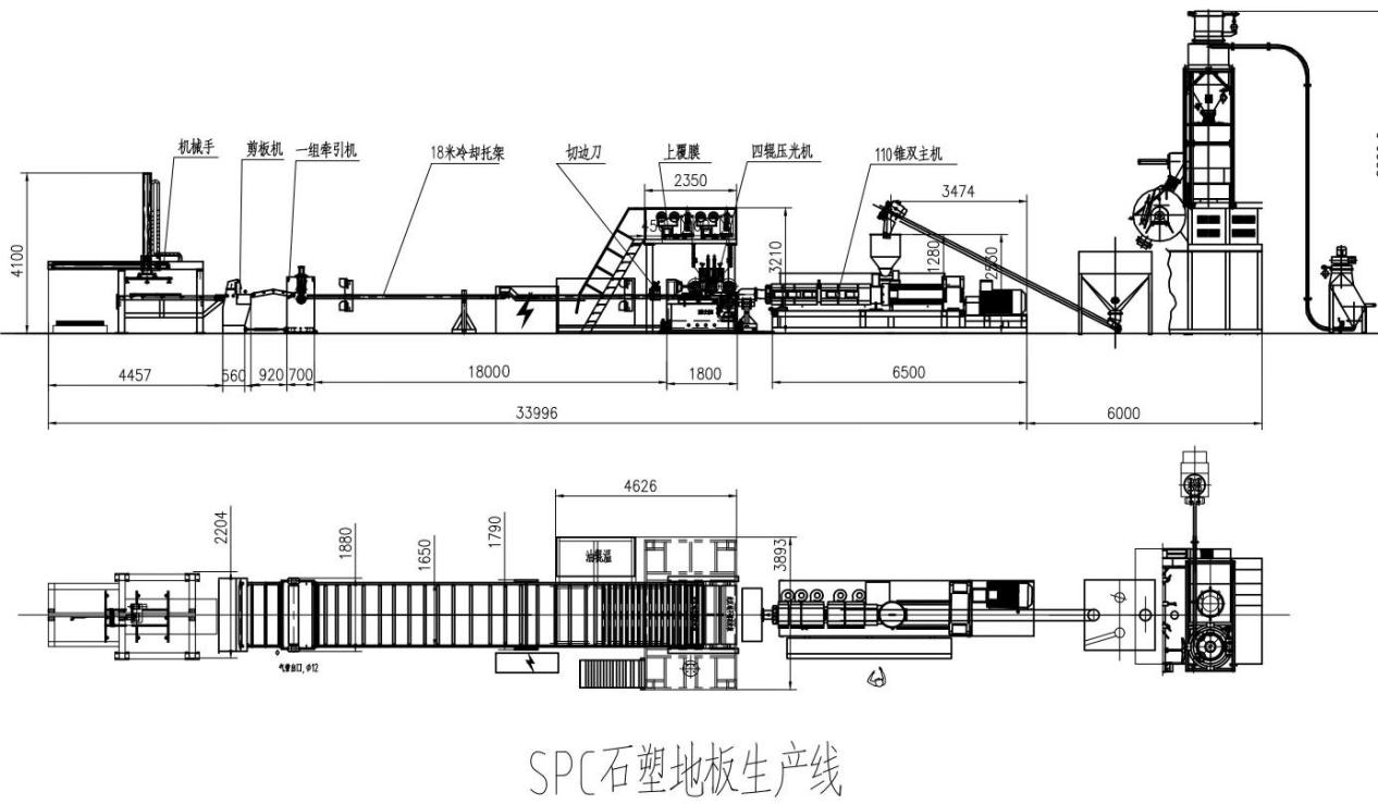 يتكون خط إنتاج الأرضيات المصنوعة من الحجر والبلاستيك SPC من آلة بثق ، قالب ، آلة تشكيل بخمس أسطوانات ، نظام تبريد ، جرار ، جيل جديد من آلة القطع الأوتوماتيكية ذات الطول الثابت ، مكدس يدوي ميكانيكي أوتوماتيكي ، إلخ ، وهو مؤتمت بالكامل.الأرضية البلاستيكية الحجرية SPC مبثوقة من مادة PVC الأساسية بواسطة الطارد ، ويتم استخدام وحدة صقل بخمس أسطوانات للضغط وتصفيح فيلم PVC الملون + طبقة مقاومة للتآكل PVC عبر الإنترنت.العملية بسيطة ، ويكتمل التصفيح بالحرارة بدون غراء.بعد أن يتم بثقها بواسطة الطارد ويتم تنفيذ عملية طلاء السطح عبر الإنترنت ، يتم طلاء السطح بطلاء UV (عادةً تمريرين) لتحسين أدائه ، ثم يتم قصه بواسطة منشار متعدد الشفرات (لأن الطول ثابت ، تحتاج فقط المنشار الطولي متعدد الشفرات) ، ثم يتم شقها عموديًا وأفقيًا ، ثم تعبئتها وتخزينها.